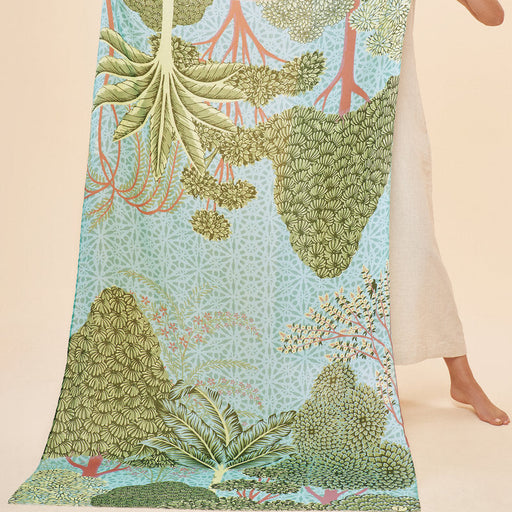 Our Secret Paradise design in aqua is directly inspired by travels into the Borneo jungle. Featuring jungle vines and ancient trees this print scar...